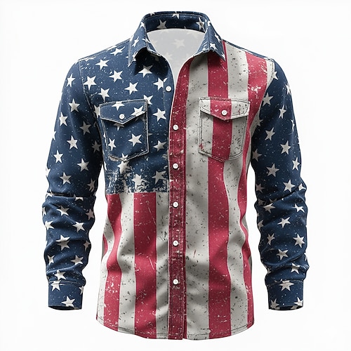 Per uomo Bandiera Americana Patriottico Camicia Camicia Western Manica Lunga Vintage Retrò Casuale Ferie Abbigliamento da lavoro Primavera Autunno Collo ripiegato Due tasche anteriori Camicia tipo