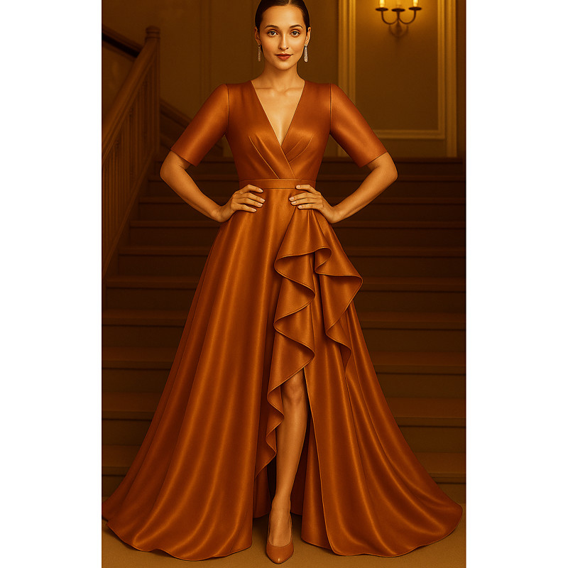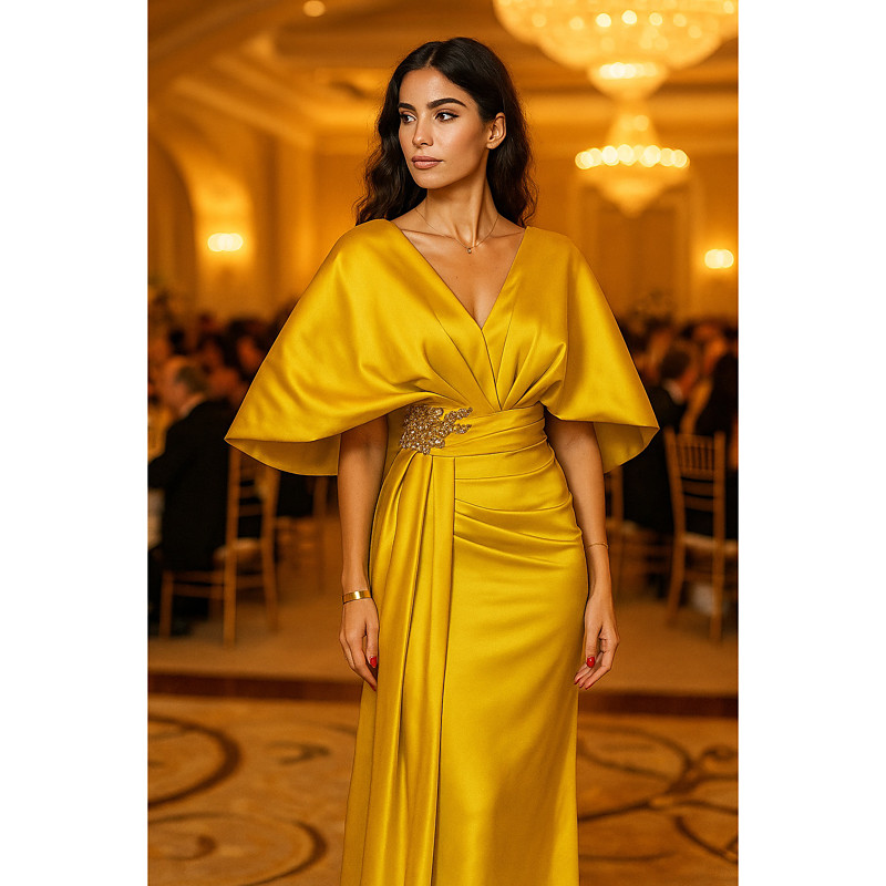 A-Line Sheath Column Floor Length Evening Gown Ball Gown Elegant Glittering Silky Short Sleeve V Neck Wedding Formal Satin with Glitter