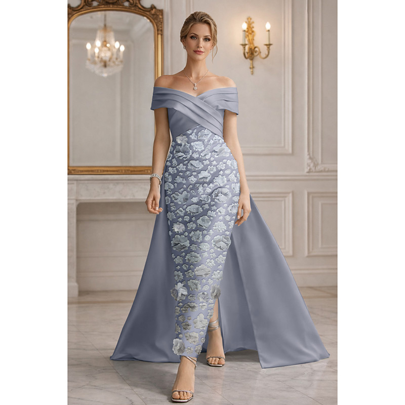 Mermaid Trumpet Floor Length Evening Gown Ball Gown with Overskirt Formal Dress Elegant Sleeveless Off Shoulder Wedding Formal Satin Lace with 3D Flowers Pleats