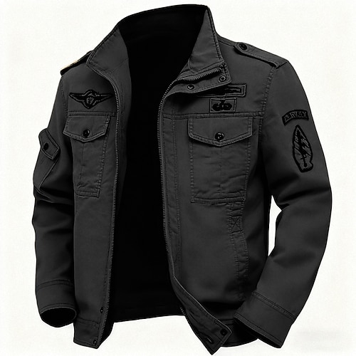 Per uomo Giacca utility Giacca Cargo Giacca Casual Vacanza Quotidiano Resistente all'usura Tasca Frontale Primavera Autunno Semplice Moda Classico Collo alla coreana Regolare Nero Cachi Verde militare