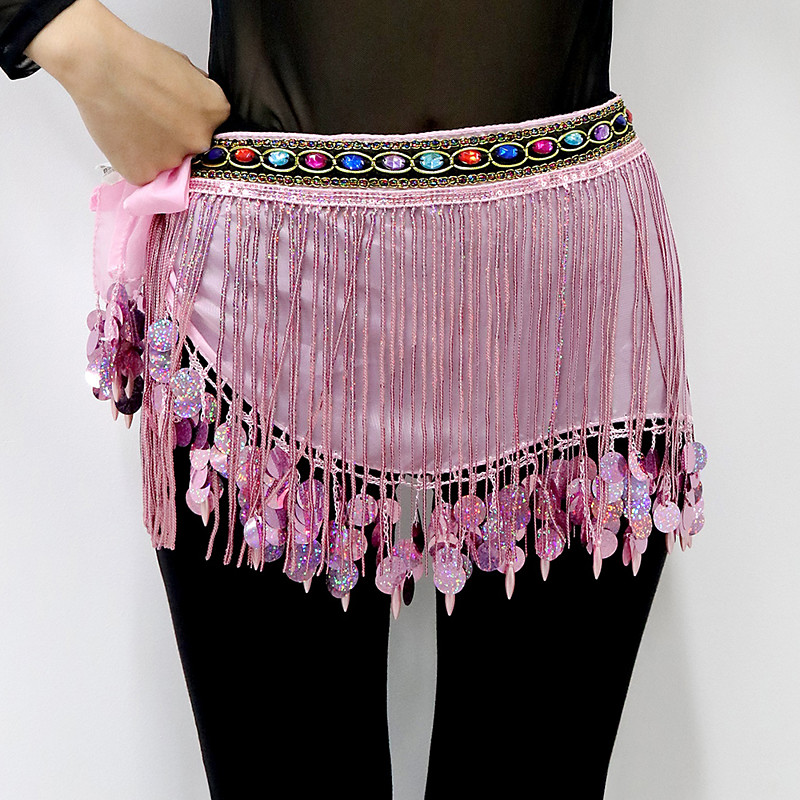 Belly Dance Belt Pure Color Splicing Paillette Women's Performance Training Dropped Velvet