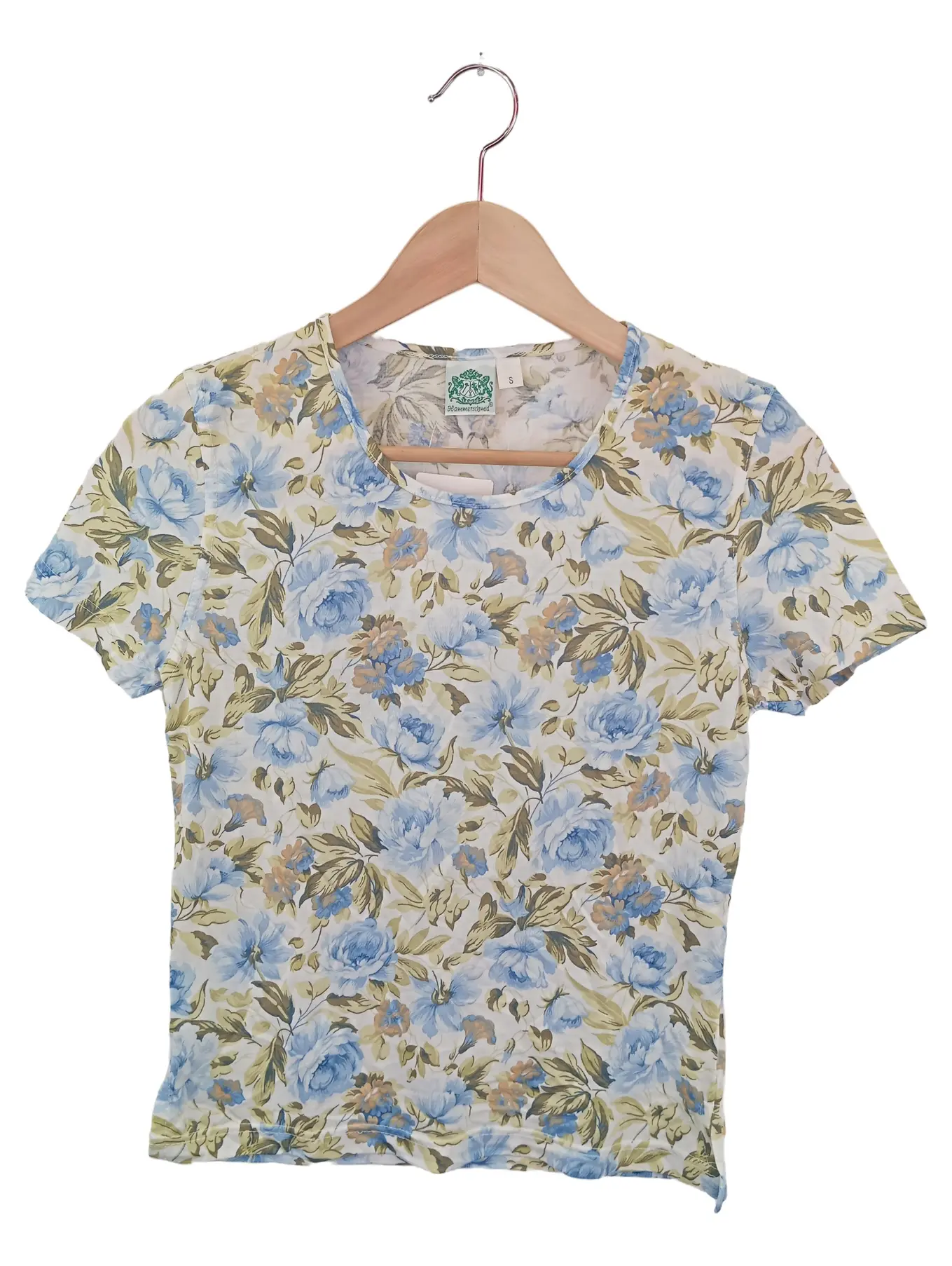 HAMMERSCHMID Damen T-Shirt Größe S Blumenmuster Vintage Look