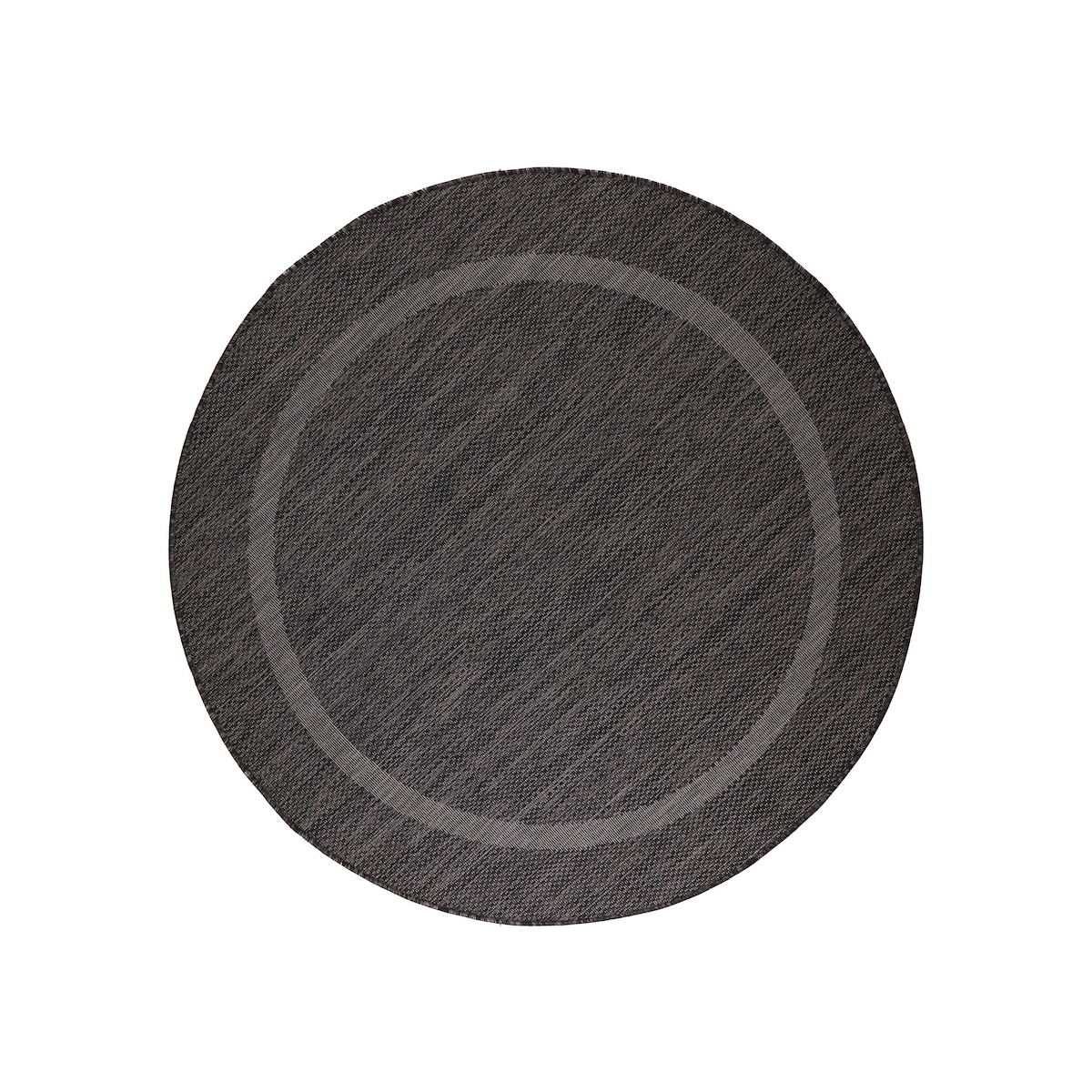 Carpetsale24 In & Outdoor Teppich Wetterfest 200 cm Rund Schwarz in Einfarbig Bordüre Design für Balkon, Terasse, Küchenteppich