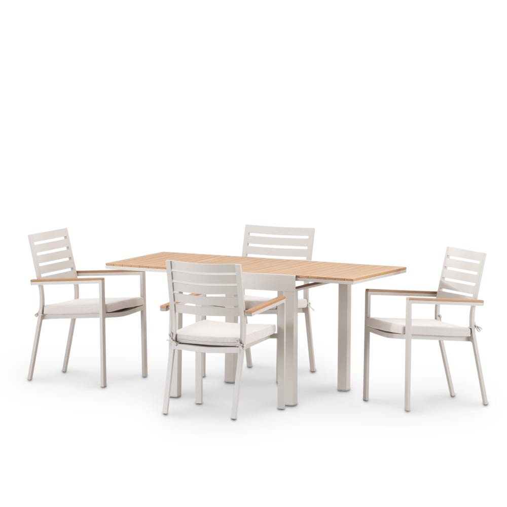 Set tavolo da giardino 160/80x80 cm e 4 sedie in alluminio beige