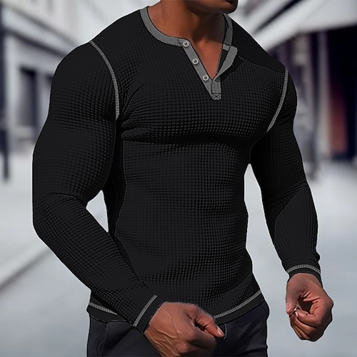 Per uomo maglietta Camicia Henley Waffle Camicia Henley T-shirt Maglia a maniche lunghe Liscio Manica Raglan Henley Strada Da mare Manica lunga Collage Abbigliamento Poliestere Di tendenza Originale
