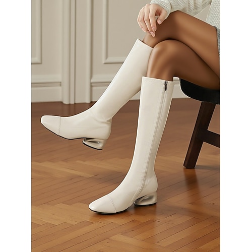 stivali gogo alti fino al ginocchio da donna bianchi con tacchi a blocco e chiusura con cerniera - elegante design retrò per feste e abbigliamento casual