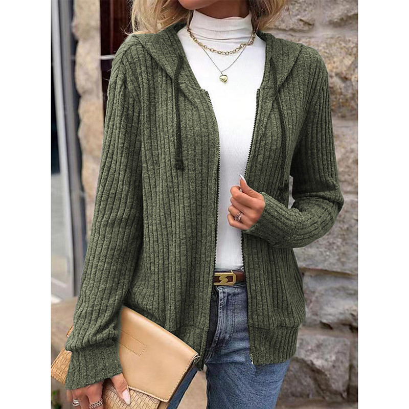 Women's Sweater Cardigan Casual Soft Pure Color Ribbed Hooded Knitted Hooded Long Sleeve Long Tops Knit Outdoor Daily Weekend Black Wine Fall Winter