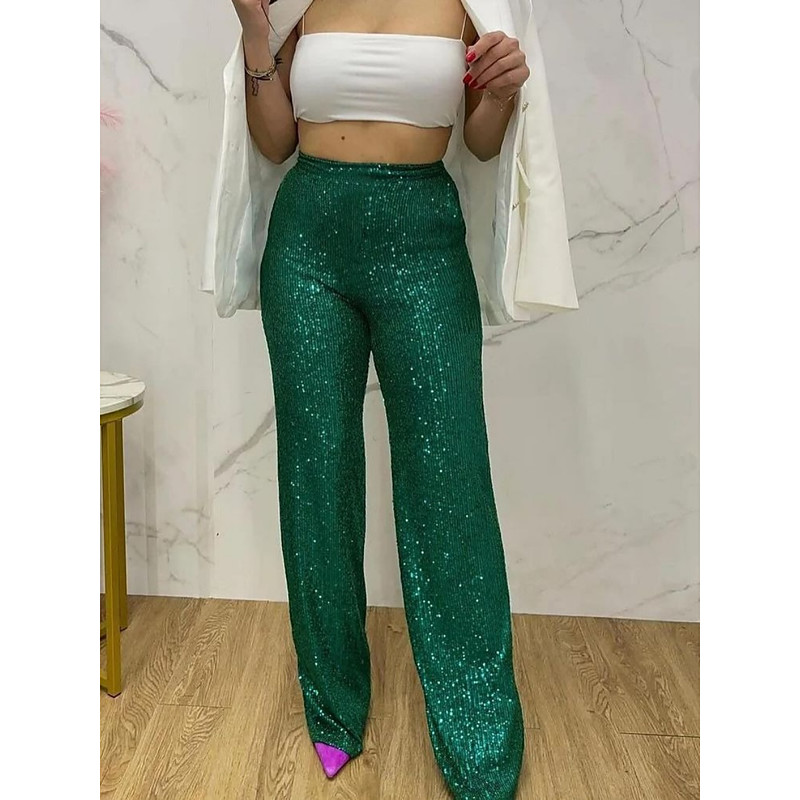Women's Straight-Leg Trousers Fashion Streetwear Sparkle Full Length High Waist Plain Shimmery Comfy Soft Comfortable Inelastic Outdoor Party Silver Black Pink Fuchsia Summer Spring Regular Fit