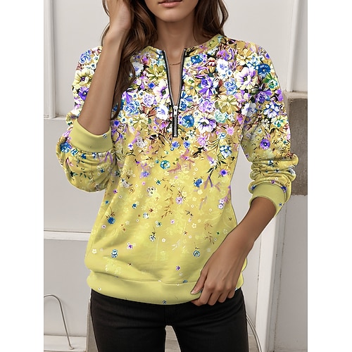 Per donna Felpa Pullover Felpe con cerniera Floreale Grafico Moda Casual Manica Lunga Girocollo Top Regolari Streetwear Abbigliamento Quotidiano Cerniera Stampato Giallo Rosa Blu Arancione Verde