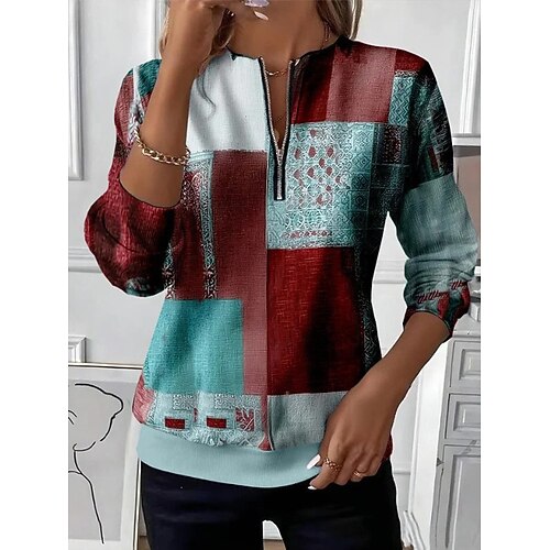 Per donna Felpe con cerniera Grafico Geometrico Moda Casual Manica Lunga Girocollo Top Regolari Streetwear Abbigliamento Quotidiano Casuale Patchwork Cerniera Stampato Blu Arancione Autunno Inverno