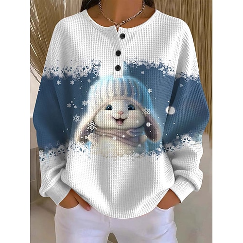 Felpe con cappuccio da donna grafica fiocco di neve moda casual stampa a maniche lunghe collo rotondo top regolari street casual bottoni blu viola verde inverno