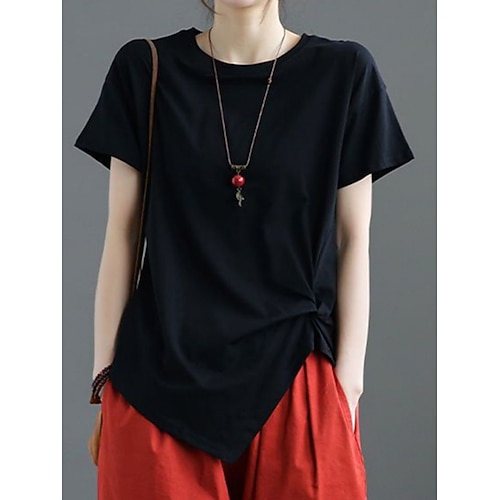 Per donna Maglietta Tinta unica Moda Elegante Classico Manica Corta Girocollo Top Regolari Quotidiano Weekend Arricciato Nero Bianco Cachi Estate Primavera