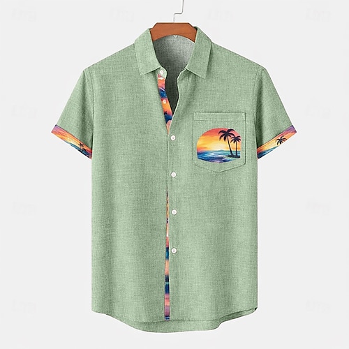 Per uomo Camicia Camicia di lino Camicia Estiva Camicia da Spiaggia Camicia con Bottoni Albero di Cocco Vacanza Casuale Nero Bianco Verde chiaro Rosa Manica Corta Collo ripiegato Estate Abbigliamento