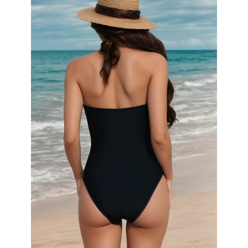 Women's One Piece Swimsuit Deep V Open Back Swimwear Solid Colored Swimwear Black White Breathable Quick Dry Lightweight Sleeveless - Swimming Surfing Beach Summer Spring