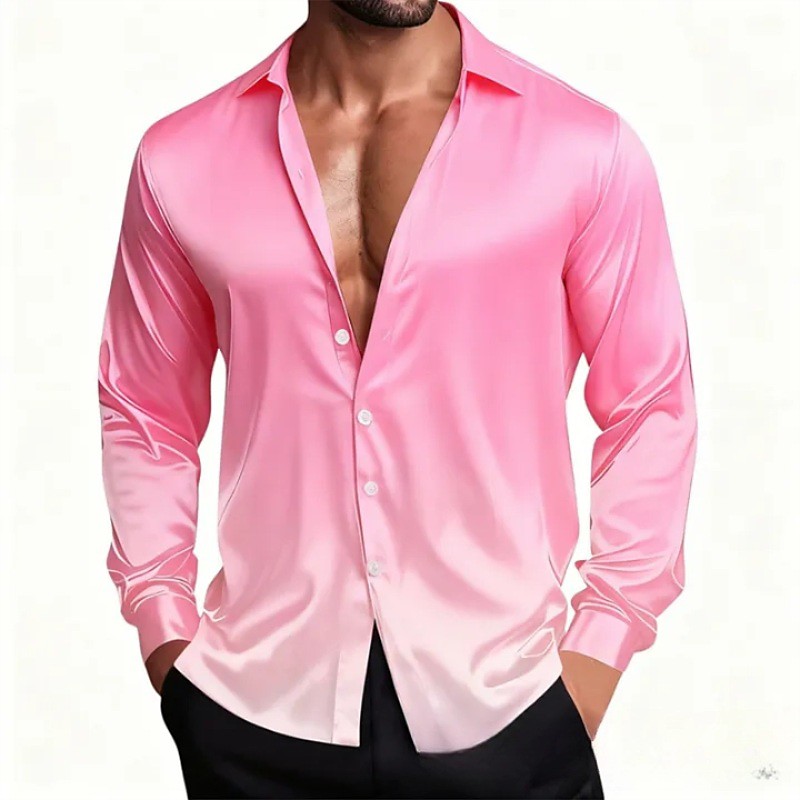 Men's Shirt Satin Shirt Dress Shirt Button Up Shirt Prom Shirt Gradient Wedding Formal Light Pink Light Blue Black Blue Long Sleeve Turndown All Seasons Clothing Apparel