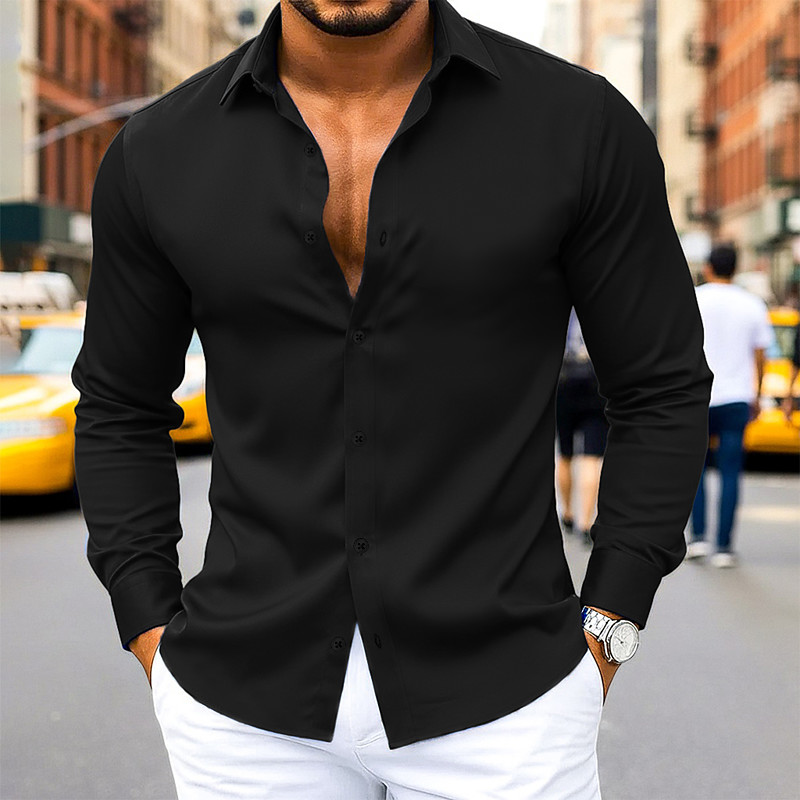Men's Dress Shirt Collared Shirt Button Up Shirt Prom Shirt Satin Silk Shirt Plain Wedding Party Navy Black White Yellow Long Sleeve Collar Clothing Apparel