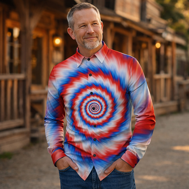American 250 Retro Vintage 1970s Shirt Aloha Shirt Long Sleeves Hippie Geometic Ethnic Fancy Dress Men's Masquerade 4th of July Party Independence Day Semiquincentennial Adults' Shirt