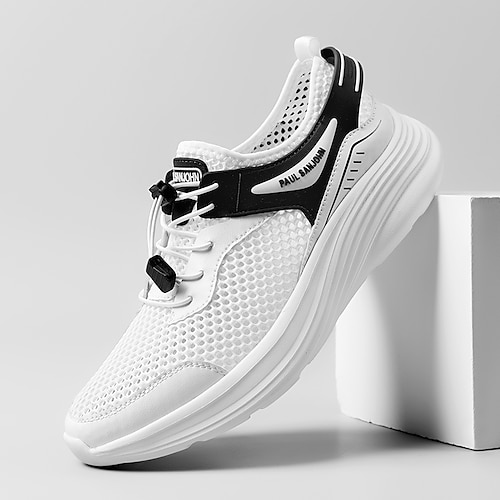 Scarpe da ginnastica casual da uomo bianche con lacci, traspiranti, leggere e comode per camminare tutti i giorni, viaggiare, andare al lavoro, per il tempo libero all'aperto, per le attività del fine settimana e per uno stile sportivo casual moderno.