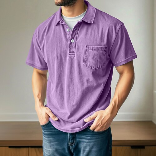 Per uomo Polo Sportivi Camicia 100% cotone lavaggio acido Casuale Ferie Bavero Manica Corta Vintage Essenziale Tinta unica Semplice Vintage ▾ angosciato Estate Primavera Primavera Estate