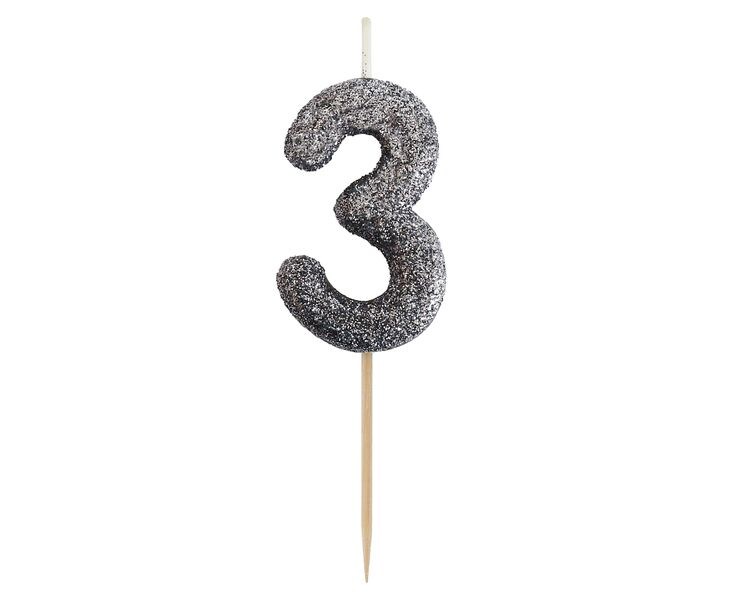 Glitzer Kerze Zahl 3 schwarz
