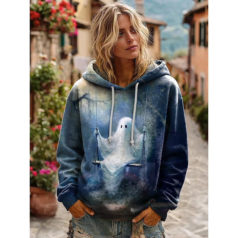 Women's Hoodie Pullover Sweatshirt Oversized Long Sleeve Casual Skulls Graphic Abstract Fashion Print Hooded Regular Tops Street Dailywear Drawstring Print White Fall Winter