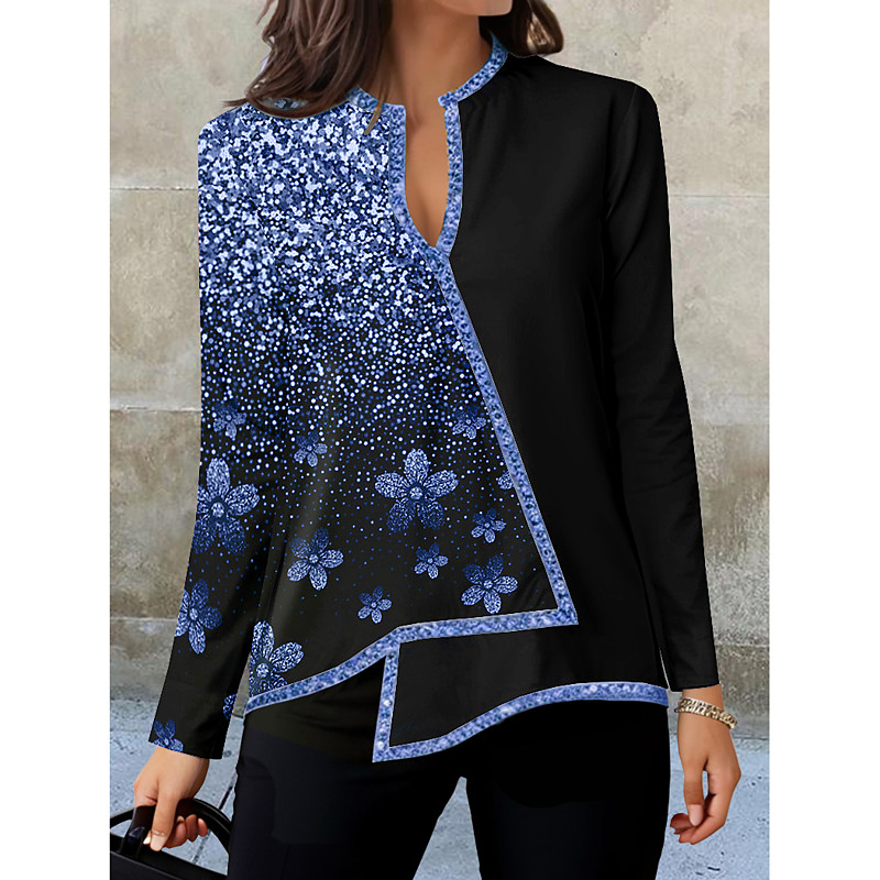 Women's 3D Print Blouse Long Sleeve Asymmetrical Hem Fashion Floral Print Asymmetric Hem Regular Tops V Neck Casual Holiday Black Silver Pink Blue Green Fall Winter