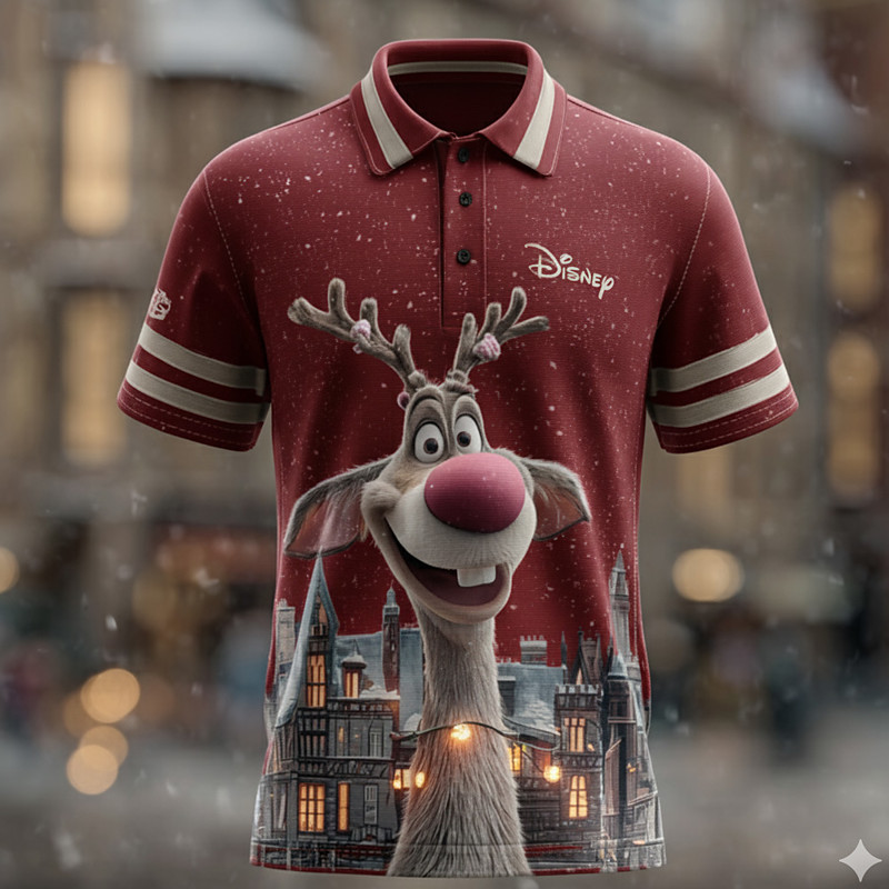 Christmas Men's Reindeer Zip Polo Short Sleeve Turndown Leisure Daily Wear Festival 3D Print Summer Black Red Green