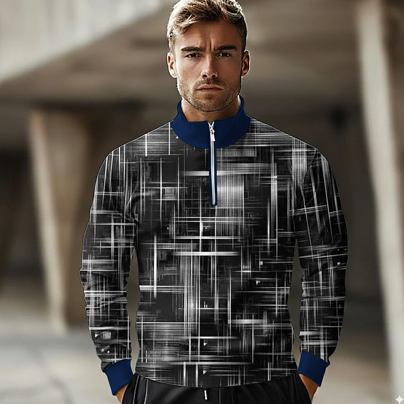 Men's Geometic Polo Long Sleeve Standing Collar Athleisure Vacation Athleisure Casual Daily 3D Print Spring Fall Winter Black Green