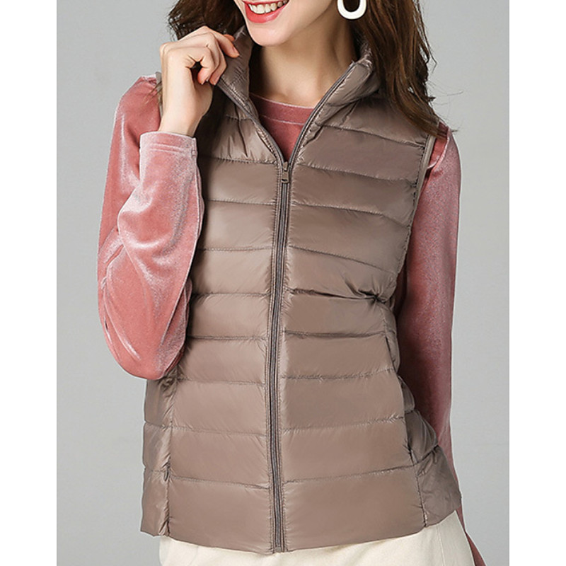 Women's Vest Warm Comfortable Zipper Pocket Fashion Plain Outdoor Vacation Zipper Regular Stand Collar Regular Fit Sleeveless Outerwear Black White Purple Fall Winter