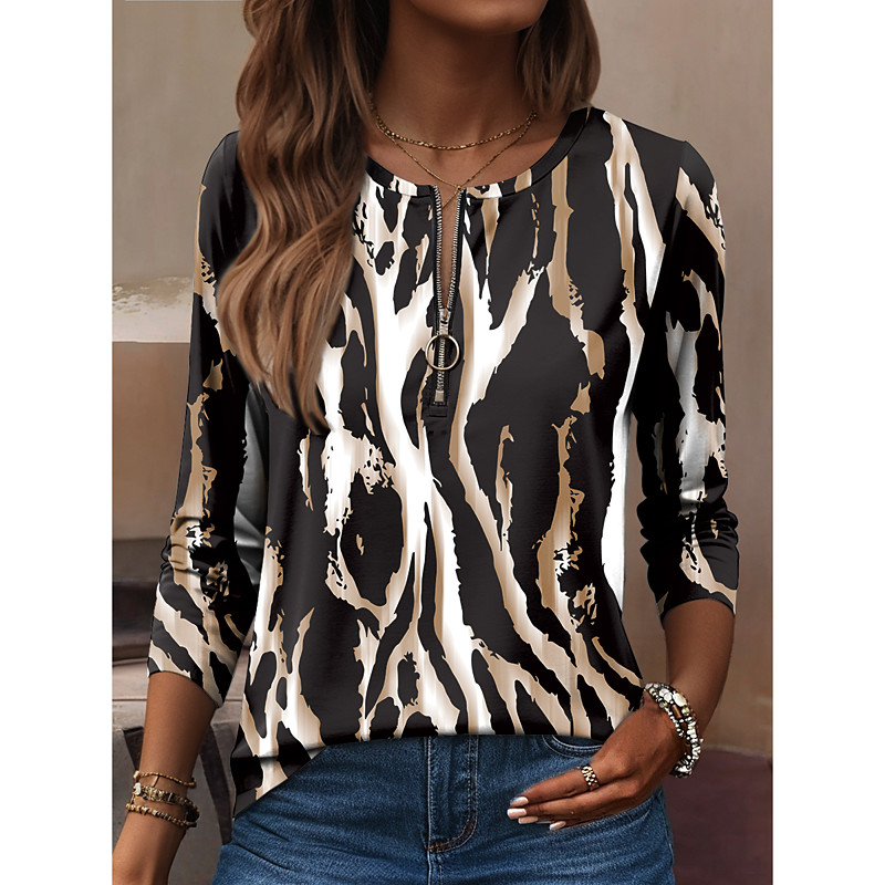 Women's T Shirt Graphic Leopard Fashion Casual Long Sleeve Crew Neck Regular Tops Daily Zipper Print Black Brown Khaki Spring Fall Winter