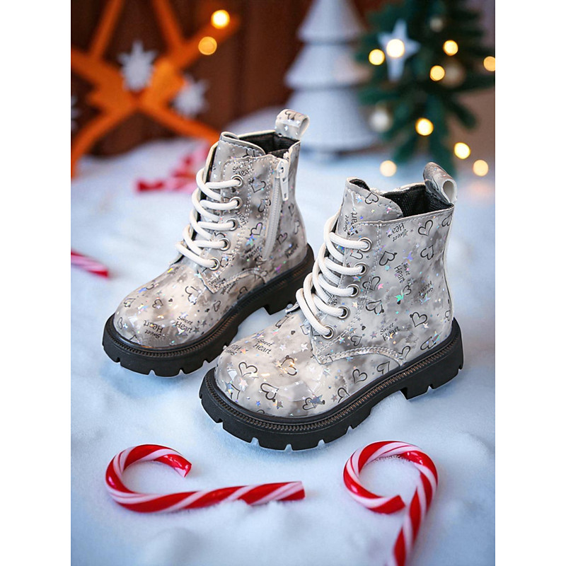 Girls' Combat Boots with Lace-Up Design and Side Zipper for Dance Performances and Stage Outfits