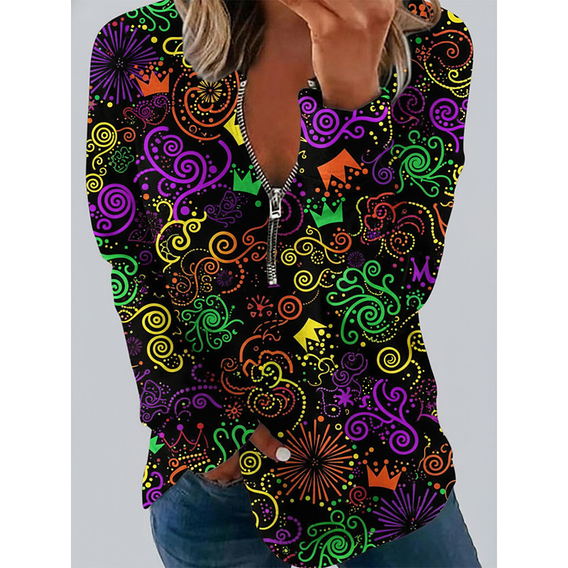 Women's Pullover Sweatshirt Zip Up Sweatshirts Graphic Vintage Casual Long Sleeve Crew Neck Regular Tops Street Dailywear Casual Zipper Print Purple Spring