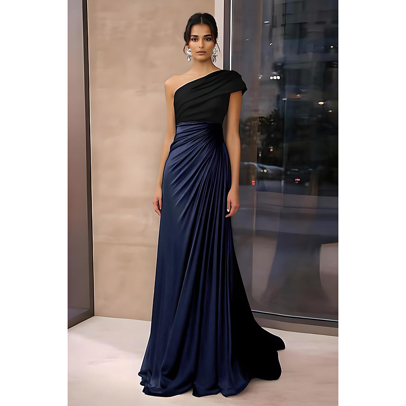 Mermaid Trumpet Floor Length Prom Dresses Evening Gown Ball Gown Formal Dress Elegant Glittering Celebrity Style Sleeveless One Shoulder Garden Party Wedding Satin Stretch Crepe with Ruched