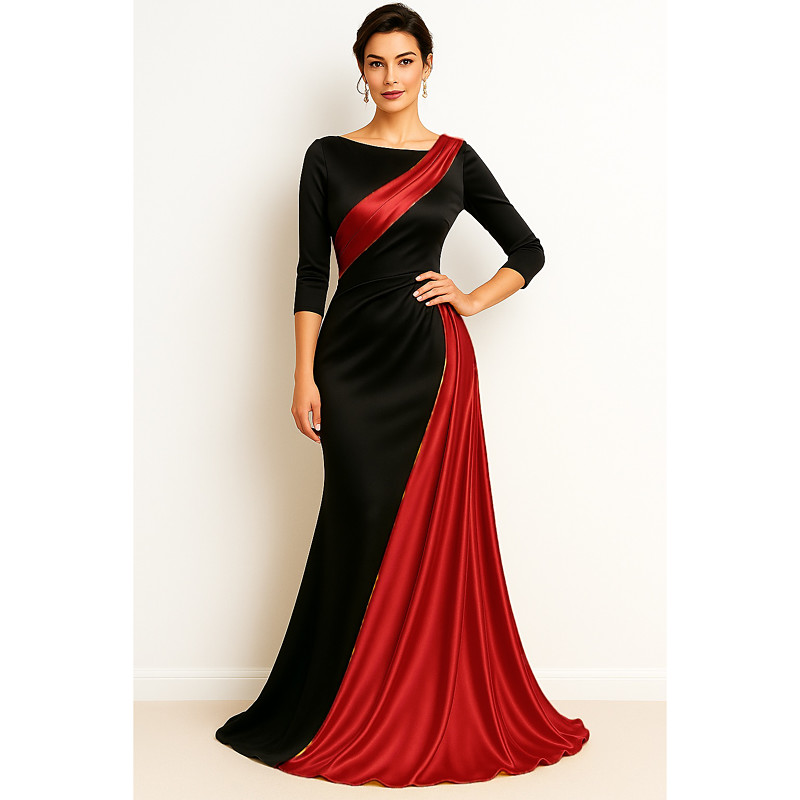 A-Line Floor Length Prom Dresses Evening Gown Ball Gown Formal Dress Elegant Color Block Silky Long Sleeve Boat Neck Wedding Formal Champagne Mother Of the Bride Dress Stretch Satin with Pleats