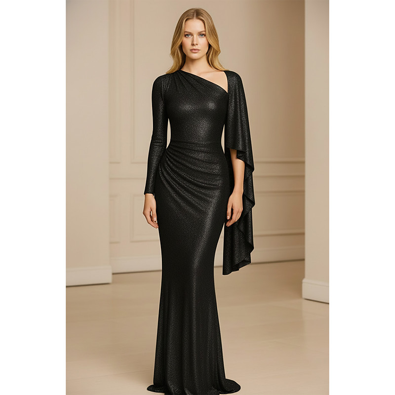Mermaid Trumpet Floor Length Prom Dresses Evening Gown Ball Gown Formal Dress Elegant Glittering Celebrity Style Long Sleeve One Shoulder Garden Party Wedding Lurex Fabric with Glitter