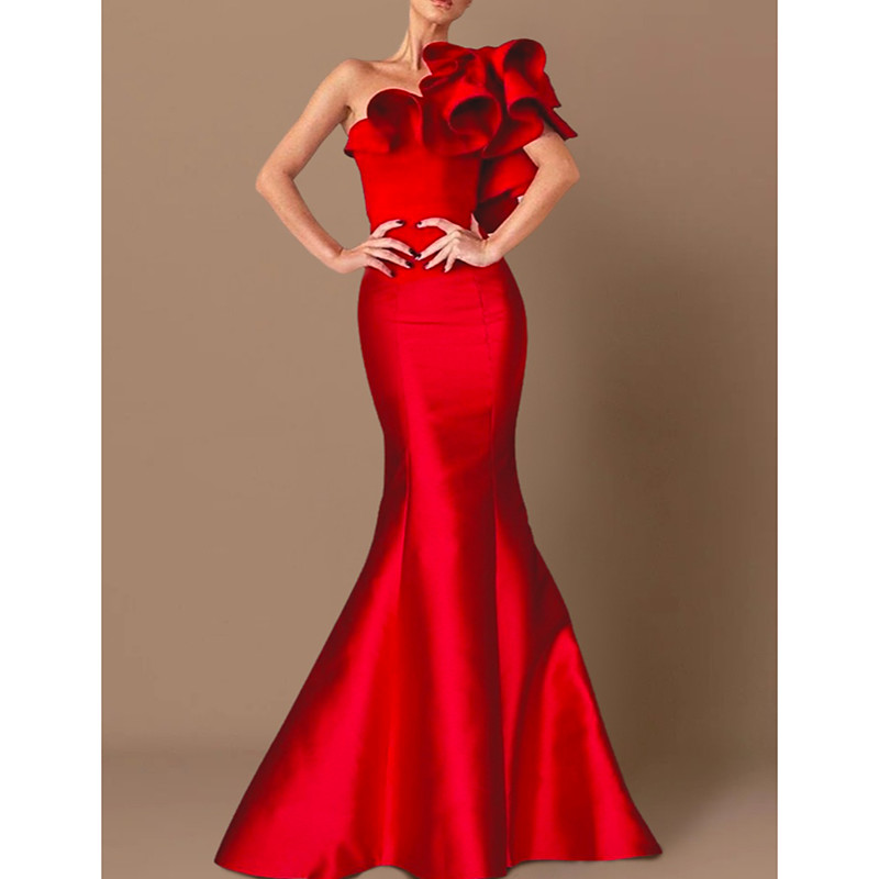 Mermaid Trumpet Floor Length Prom Dresses Evening Gown Ball Gown Formal Dress Corsets Sexy Sleeveless One Shoulder Formal Wedding Guest Taffeta with Ruffles Shouder Flower