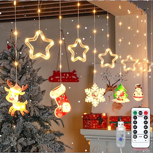 Dekorative Lichterkette 3M 10 hängende Pentagramm Schneeflocke Baum 8 Funktion Fernbedienung USB/AAA Batterie Innenparty Feiertagsatmosphäre Dekorationslicht