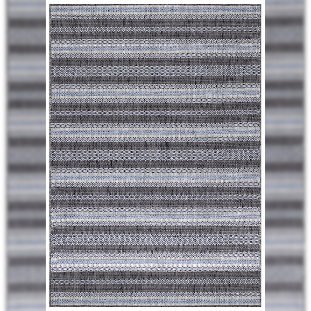 Teppich Outdoor Flachgewebe Vintage-Look Polypropylen Balkon Schwarz Rechteckig 240x340 | Kadima Design