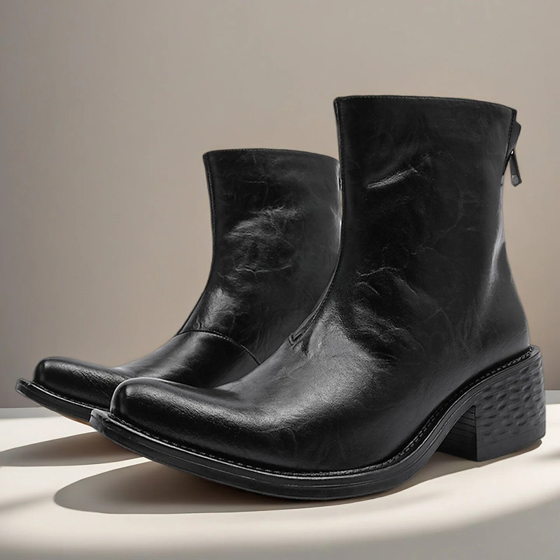 Men's Premium Faux Leather Hiking Boots – Durable Zipper-Closure Shoes for Outdoor Adventures Casual Wear