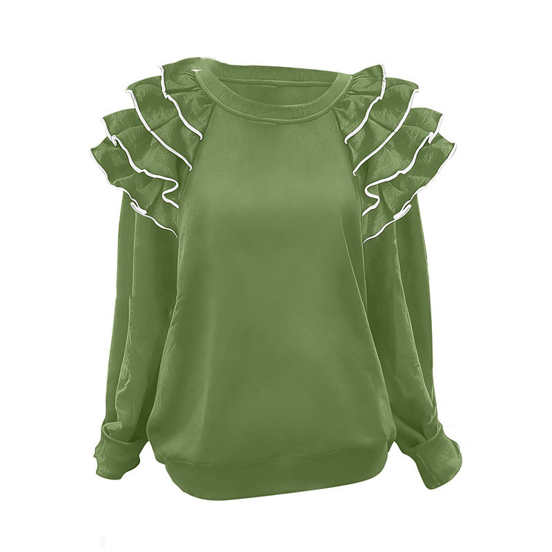Women's Blouse Dressy Tops Plain Elegant Vintage Cute Long Sleeve Crew Neck Regular Tops Work Daily Holiday Ruched Ruffle Patchwork Grass Green Black White Army Green Red Fall Winter