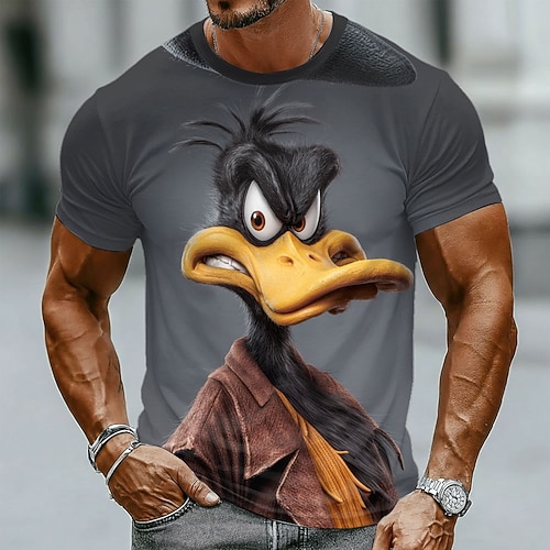 T-shirt da uomo con stampa grafica 3D di un'anatra nera imbronciata in giacca, stile streetwear, stampa all-over, vestibilità slim, abbigliamento casual da esterno, taglie S, M, L, XL, XXL, XXXL