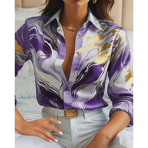 Per donna Camicia Geometrico Quotidiano Elegante Essenziale Manica Lunga Colletto a Camicia Top Regolari Lavoro Quotidiano Ferie Bottoni Stampato Rosa Azzurro cielo Viola Verde Cachi Primavera Autunno