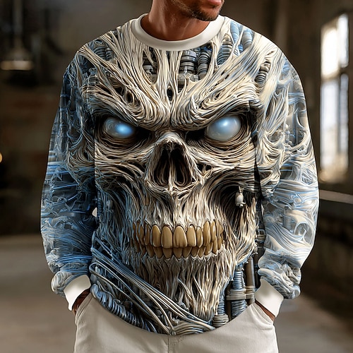 Per uomo Teschio 3D Mietitrice Felpa Punk Festa Gotico Manica Lunga Girocollo Vacanza Blu Azzurro cielo Verde Grigio Girocollo 3D Tutte le stagioni progettista S M L XL XXL XXXL