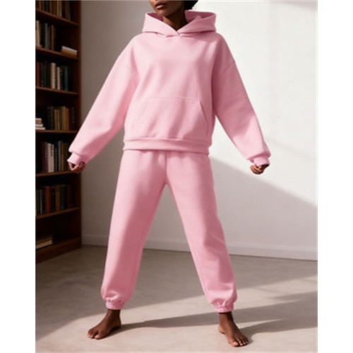 Per donna Elegante Caldo Attivo Set di Pantaloni Bolero Top Manica Lunga Con Cappuccio Semplice Arricciato Patchwork All'aperto Vacanza Lavoro Nero Rosa Azzurro cielo Autunno Vestibilità regolare