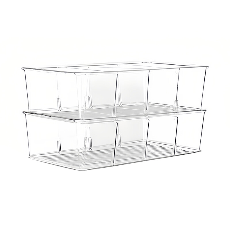 JORDAN&JUDY Compartment Storage Box, PET Material, Transparent, Desktop Organizer for Snacks, Coffee, Tea Bags, 26.5*15.3*8.9cm, 2-Pack