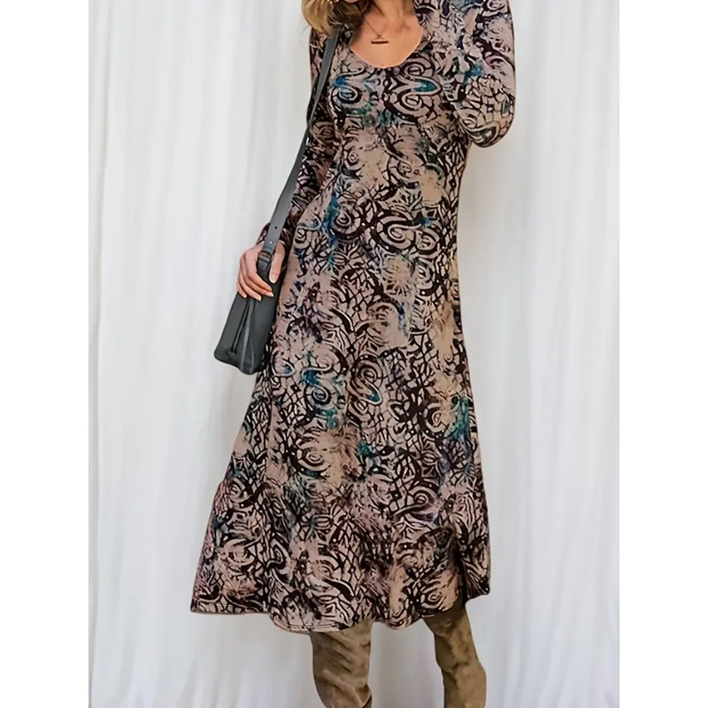 Women's Midi Dress Sheath Dress Shift Dress Casual Daily Regular Fit Floral Graphic Paisley Long Sleeve Crew Neck Brown Spring Fall Winter Autumn