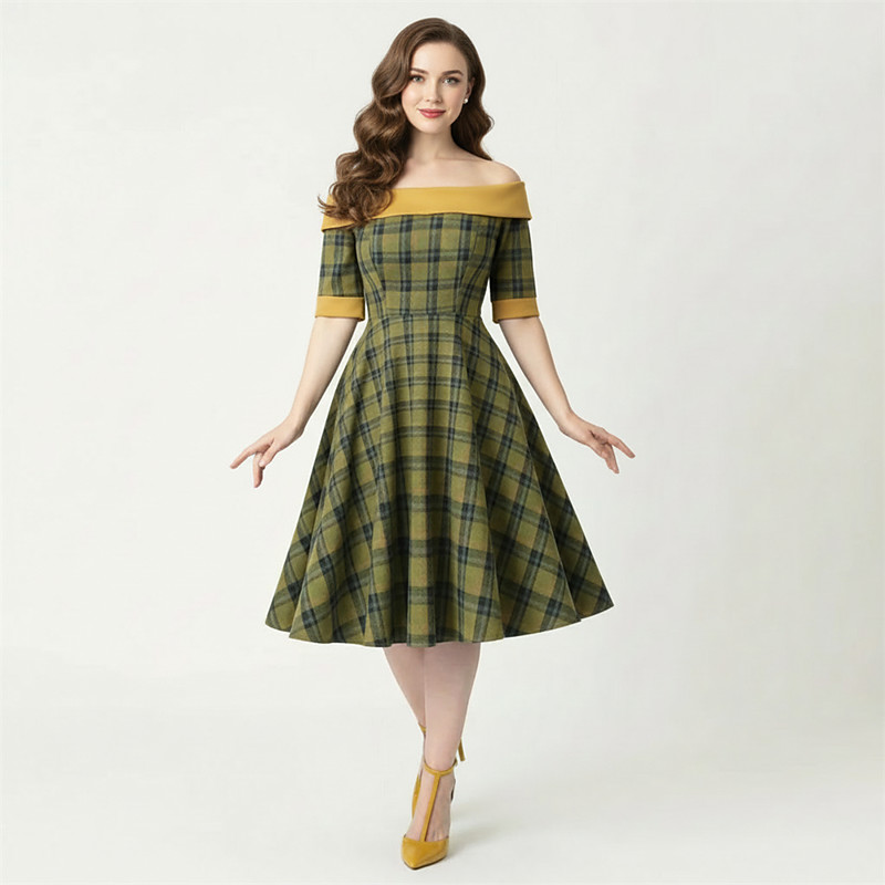 Retro Vintage 1950s Hepburn Midi Dress A Line Dress Flare Dress Short Sleeves Plaid Fit Flare Fancy Dress Women's Carnival Valentine's Day Casual Homecoming Retro Theme Party Adults' Dress Spring