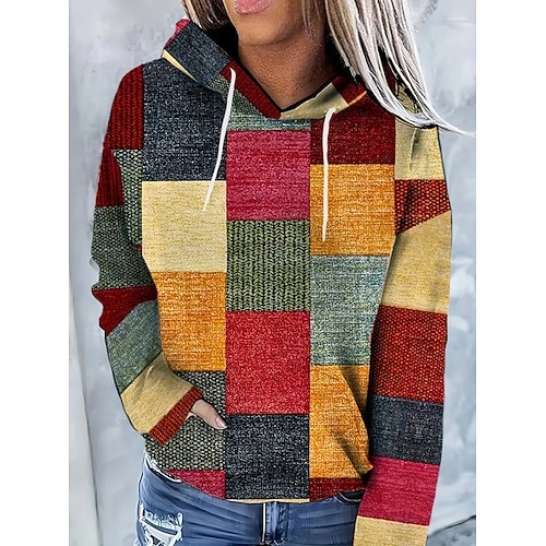 Per donna Felpa con cappuccio Grafico Geometrico Caldo Vintage Moda Manica Lunga Con Cappuccio Top Regolari Streetwear Abbigliamento Quotidiano Ferie Stampato Arancione Azzurro Autunno Inverno