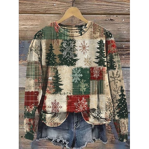 Per donna Felpa Pullover Grafico Albero di Natale Natale Moda Casual Manica Lunga Girocollo Top Regolari Casuale Streetwear Abbigliamento Quotidiano Stampato Rosso Verde Autunno Inverno