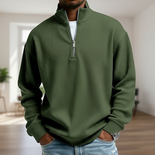 Herren Cordhemd T-Shirt Langarm Viertelreißverschluss Herbst Frühling Herbst Einfarbig Mode Modern Lässig Reißverschluss Warm Lässig Outdoor Schwarz Dunkel Blau Grau Top T-Shirt für Herren